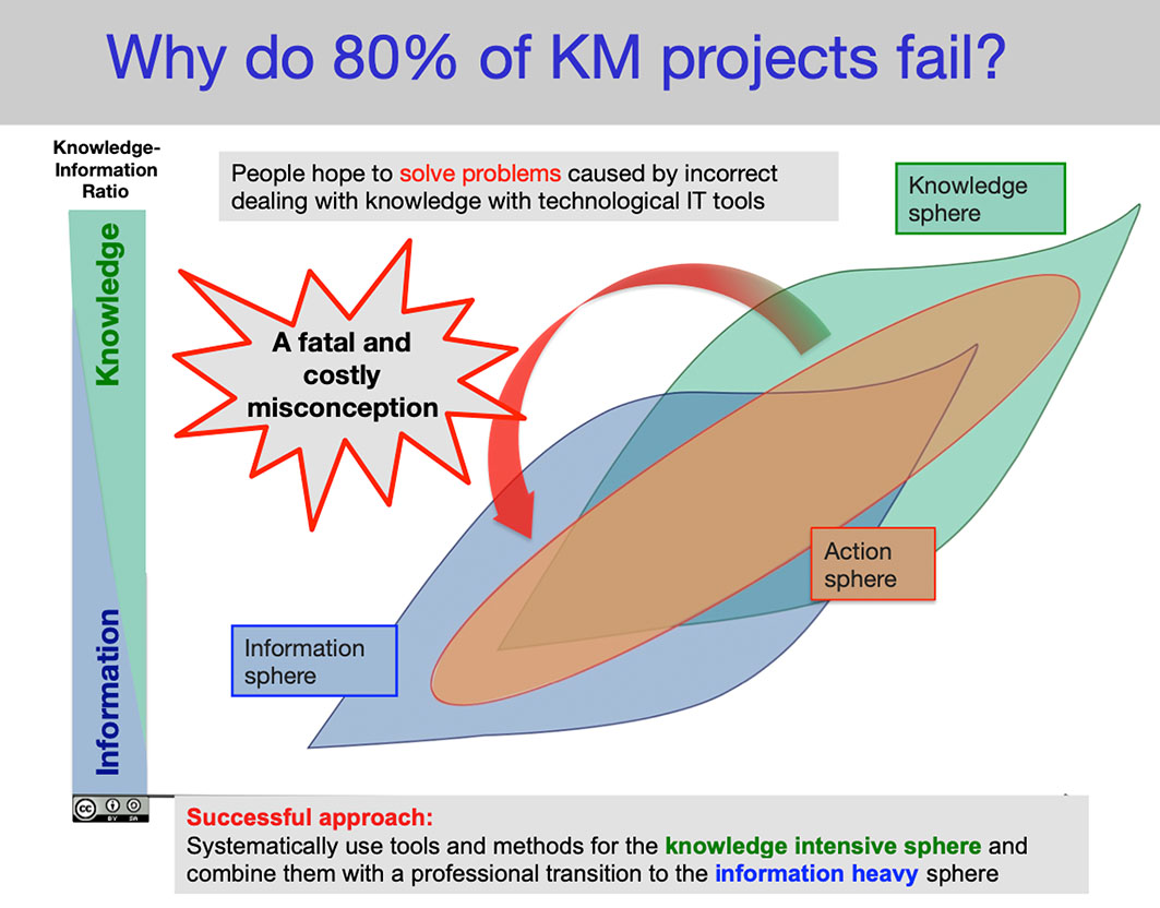 Still one of the best recipes for failing any knowledge management project: Call content in documents, SharePoints or Confluence «knowledge». I know, there is this disastrous term «explicit knowledge». According to the D-A-CH KM Glossary explicit knowledge is information.