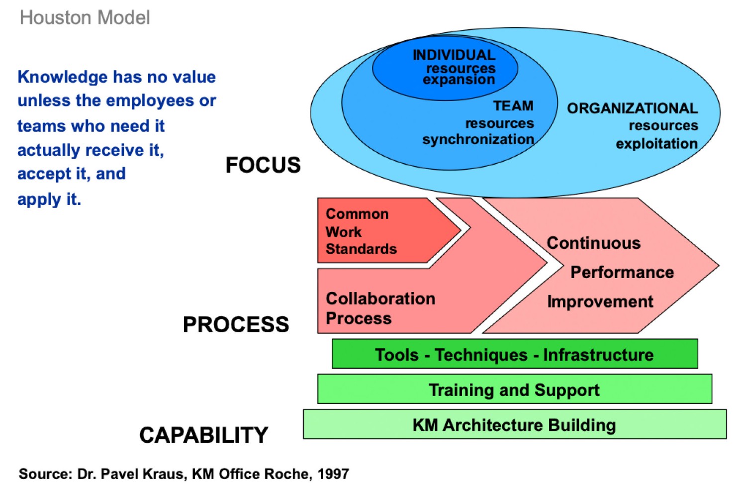 The Houston Model was the first of six that have been developed since, based on consulting work or discussions within the Swiss Knowledge Management Forum. The latest is a Problem-Consequence KM Story Model that is included in the 2024 Guideline ENABLING KNOWLEDGE MANAGERS TO COMMUNICATE BETTER WITH BUSINESS MANAGERS.